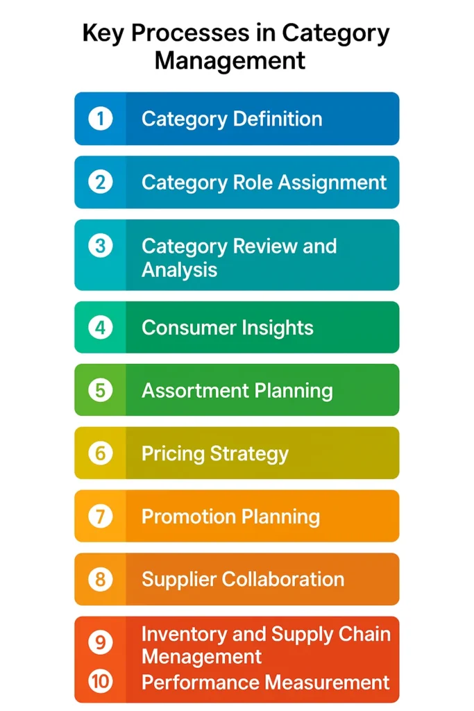 - Performance Measurement and Reporting – Using KPIs and analytics to track category performance and refine strategies.