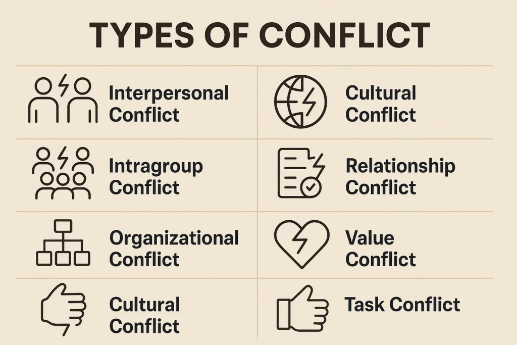 - Structural conflicts that emerge due to policies, hierarchies, or organizational changes.