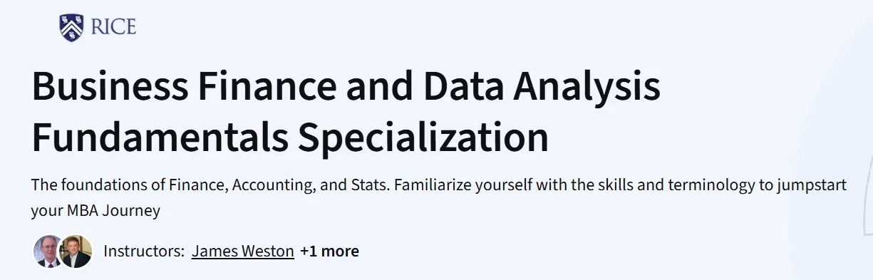Specification: Business Finance and Data Analysis Fundamentals Specialization