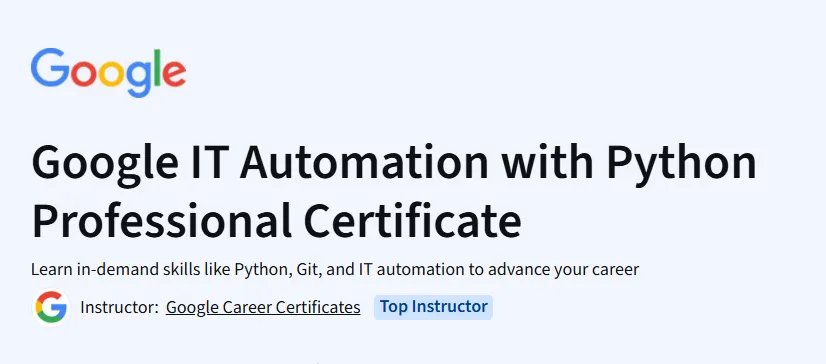 - This certificate integrates Python with IT workflows.